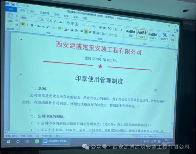 為適應(yīng)西安建博建筑安裝工程有限公司的發(fā)展需要,提升全員業(yè)務(wù)能力,促使全體伙伴們更加理解和落實(shí)公司的管理,便于全員在工作中更加專業(yè)、高效的服務(wù)于客戶,公司于2024年11月17日早上在公司會(huì)議室開展了關(guān)于“公司管理制度及財(cái)務(wù)、合同等全方面的管理制度”交流會(huì)。